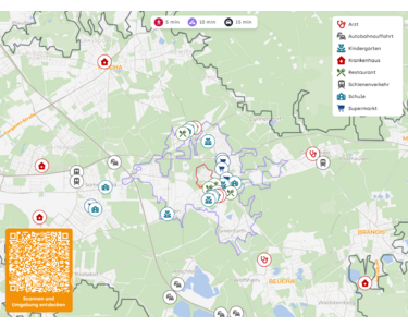 Diese Immobilie besticht durch ihre hervorragende Anbindung an den öffentlichen Nahverkehr und die Autobahn. Die nächste Bushaltestelle ist nur wenige Gehminuten entfernt, während der Bahnhof Borsdorf in etwa 10 Minuten zu Fuß erreichbar ist. Die Autobahnauffahrt zur A14 liegt in ca. 10 Minuten Fahrdistanz, was eine schnelle Verbindung in die umliegenden Städte ermöglicht. Der nächste Flughafen, der Flugplatz Taucha, ist etwa 5 km entfernt und bietet eine gute Erreichbarkeit für Geschäftsreisende.