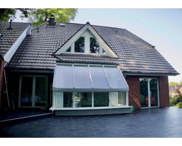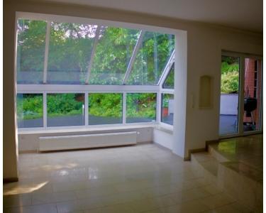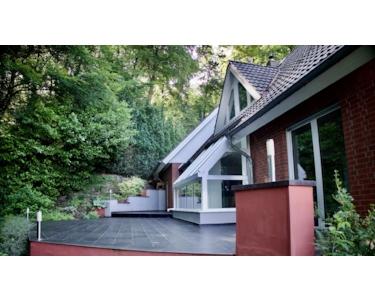Im hellen und freundlichen Wohnzimmer mit mehreren Ausgängen auf die Terrasse genießen Sie viel Licht und einen direkten Zugang in den Garten. Ein wintergartenartiger Ausbau ist harmonisch in den Wohnbereich integriert und schafft zusätzliche Wohnqualität.