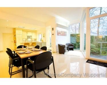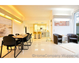 Die großzügige Komfortwohnung mit DSL- Anschluß und separatem Eingang vom Garten aus, befindet sich in einem exklusiven Anwesen in bevorzugter Wohnlage in Wuppertal-Katernberg. Der lichtdurchflutete, offene Wohnraum ist mit einer gemütlichen Sitzecke mit Designer-Sofas, passendem Tisch und SMART- TV auf einer erhöhten Wohnebene ausgestattet. Die untere Wohnebene lädt mit einem modernen Esstisch mit 6 Essplätzen zu ausgedehnten Essen mit Freunden oder Geschäftspartnern ein. Von dort aus gelangt man auch direkt in den Garten mit schöner Terrasse. Direkt anschließend an den großzügigen Essbereich befindet sich die exklusiv ausgestattete, offene Küche mit modernen Elektorgeräten (Spülmaschine, Herd mit Ceranfeld, Mikrowelle, Kaffeemaschine). Alle erforderlichen Kochuntensilien werden zur Verfügung gestellt. Das helle Schlafzimmer verfügt über ein bequemes Doppelbett(180 x 200), einen Kleiderschrank und elektrische Rolladen zur Verdunklung. Das Highlight dieser exclusiven Komfortwohnung ist das Wellnessbad. Es verfügt über eine Dampfdusche mit Sternenhimmel und verschiedenen Duscheinstellungen. Die Badewanne mit Wirlpooleinrichtung bietet Entspannung pur nach einem langen Tag. In einem kleinen separaten Abstellraum befindet sich die Waschmaschine und ein Wäschetrockner. Der Mietpreis für eine Person beträgt € 1400,00 für eine Person inklusive einer Vorrauszahlung auf die Energie- und Nebenkostenkosten in Höhe von € 150,00 und der Nutzung des Internetzugangs. Die Endreinigung zahlt der Mieter. Sie erfolgt nach Aufwand und wird mit derzeit € 35,00 pro Stunde abgerechnet.