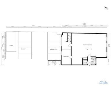 Die zur Vermietung stehende Gewerbefläche umfasst insgesamt 167,04 m² und bietet vielseitige Nutzungsmöglichkeiten für Einzelhandel oder Büro. Der Grundriss ist überwiegend offen gestaltet und erlaubt eine flexible Raumaufteilung. Ergänzt wird die Fläche durch ein separates Büro, eine Küche sowie ein WC. Ein Kellerraum steht als Lager- oder Archivfläche zur Verfügung. Optional können bis zu vier Stellplätze direkt am Objekt angemietet werden.
