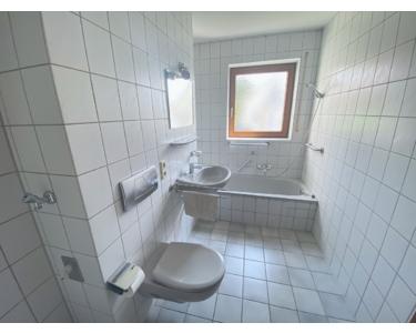 - Tageslichtbad mit Badewanne, WC, Waschbecken und Waschmaschinenanschluss, gefliest
