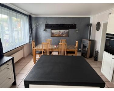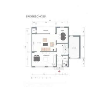Großzügiges Wohnzimmer mit Zugang zur Terrasse, separate Küche, Wohnbereiche auch für ältere Bewohner ebenerdig nutzbar.
