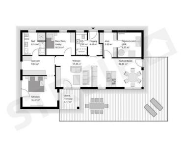 Bei STREIF haben Sie die Möglichkeit, Ihren individuellen Fertighaus Bungalow nach Ihren Vorstellungen zu gestalten. Ob mit oder ohne Keller, geradlinig oder verwinkelt - hier stehen Ihnen vielfältige Gestaltungsoptionen zur Verfügung. Darüber hinaus können Sie aus verschiedenen Dachformen wählen - sei es klassisch mit Walmdach oder Zeltdach oder modern mit Flachdach. Zudem bieten wir Ihnen 3 verschiedene Ausbaustufen an, um Ihr Haus ganz nach Ihren Bedürfnissen zu realisieren.