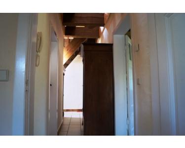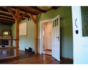 Bei der Innengestaltung der Räumlichkeiten wurde viel helles Holz verarbeitet. Sichtbares Gebälk bei der Decken- und Raumgestaltung, ursprünglich alte Holztüren und verlegter Dielenboden verhelfen zu einem warmen und individuellen Charakter des Objektes. Geschmackvoller Steinfliesenboden im Flur, in der Küche und im Badezimmer unterstützen den landhausähnlichen Charakter.