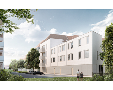 Das Mehrfamilienhaus wir in Massivbauweise ohne Keller errichtet und dem Effizienzhaus-Standard KfW 55 entsprechen. Die Materialität und Farbgestaltung der Fassade wurde in Abstimmung mit dem Denkmalamt gewählt, damit sich der Neubau harmonisch in das Viertel einfügt.