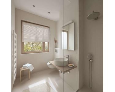 Die Wohnung besitzt drei Schlafzimmer und zwei Bäder mit großzügigen schwellenlosen Duschen. Die Bäder sind modern gefliest und mit hochwertigen Armaturen ausgestattet. Großzügige Fenster mit dreifacher Wärmeschutzverglasung lassen viel Tageslicht in die Räume und sorgen mit ihrer modernen Bauweise für optimalen Schall- und Wärmeschutz.