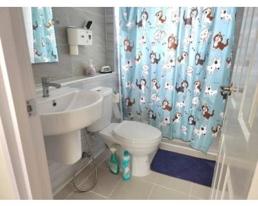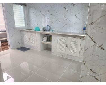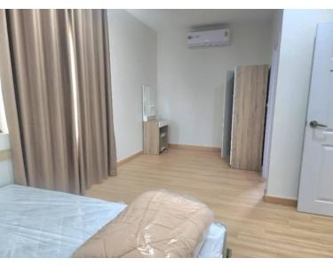 Furniture: washing machine, 2-burner gas stove, 1 sofa, 1 dining table, TV with shelves, 2 beds, custom-made curtains, 1 water pump and water tap, front lawn.