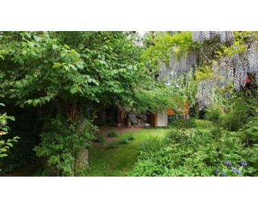 Blick vom Garten zum Haus