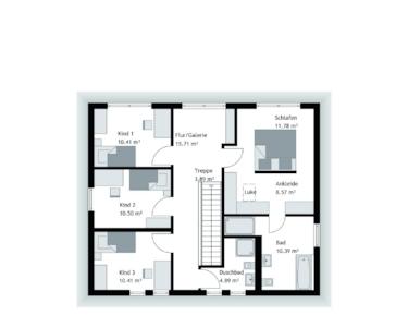 Die Grundrisse zeigen Beispiele und sollen Ihnen einen ersten Eindruck unserer Häuser bieten. Wie Ihr Haus später aussieht, entscheiden Sie selbst: vom Grundriss über die Ausstattung bis hin zur Frage, ob und welche Arbeiten Sie selbst übernehmen möchten.