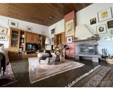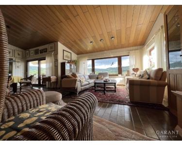 Wenn Sie vom Eingang eine Treppe hochgehen, landen Sie in der Hauptwohnung mit dem imposanten Wohnzimmer. Hier besticht das angenehme Wohngefühl durch die hohe Decke, einen offenen Kamin für lauschig gemütliche Wintertage und den tollen, großen Fenstern, die Ihnen eine wahnsinnig gute Aussicht bieten. Daran schließt der große Balkon. Hier werden Sie sicher viele Stunden verbringen und die Lage des Hauses genießen können.