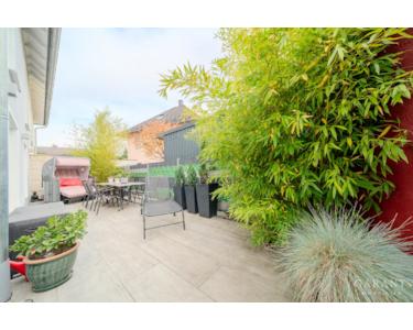 Auf vier Ebenen erwarten Sie acht Zimmer, zwei elegante Bäder mit Duschen, Wanne und Bidet sowie ein separates Gäste-WC, komplett ausgestattet mit hochwertigen Markenobjekten. Der kleine, pflegeleichte Garten bietet viel Privatsphäre und lädt zum Entspannen ein. Sonne rund ums Haus sorgt für freundliche, helle Stunden, während die liebevoll angelegten Beete im Vorgarten eine einladende grüne Atmosphäre schaffen.