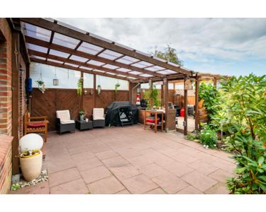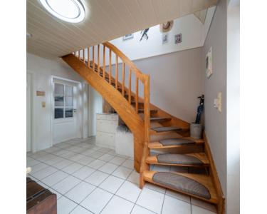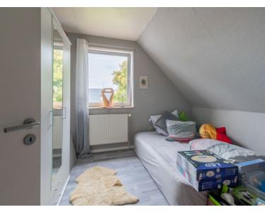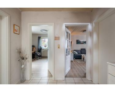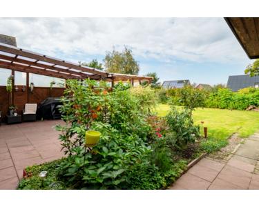 Das für den Norden typisch rote Backsteinhaus wurde 1998 auf dem insgesamt 761 m² großen Grundstück in Massivbauweise errichtet, die Außenfassade wurde gedämmt. Die Wohnfläche von rund 126 m² ist auf 2 Ebenen verteilt. Von der Diele im EG (mit integriertem Garderobenraum) führen Türen zum Gäste-WC, zur Küche, zum großen Wohn-Essbereich sowie zu einem weiteren Zimmer (Schlafen, Gäste, Büro...). Der Hauswirtschaftsraum (mit Zugang nach außen/Carport) ist über die Küche zu erreichen. Im Wohn-Essbereich gibt es einen Hark Kaminofen (7 KW, errichtet 2023) sowie den direkten Zugang zur überdachten Terrasse und zum Garten. Die Treppe in der Diele führt ins OG. Hier gibt es ein Schlafzimmer mit angrenzendem Ankleideraum, ein großes Bad mit Dusche und Wanne, 2 weitere Zimmer (Kinder, Gäste, Arbeiten...) und einen geräumigen Abstellraum. Die Klapptreppe im Flur führt in den Spitzboden, der als zusätzlicher Abstellbereich genutzt werden kann (einen Keller gibt es nicht). Außen überzeugt das Haus mit einem schönen Garten, der überdachten Terrasse, einem Carport mit Abstellraum sowie einem Extra-Gartenhaus mit Unterstand für z.B. Brennholz. Eine Photovoltaikanlage (9,756 kWp) mit Speicher erzeugt im Schnitt rund 9.000 kWh/Jahr. Beheizt wird das Objekt mit Fernwärme (seit 1998). Außerdem gibt es eine Wallbox als Ladestation für ein E-Auto.