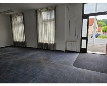 Erdgeschoss rechts, ca. 41 m² Gewerbe: vorne Laden (Teppich) Decke 0,5 m abgehängt, kleiner Raum (PVC), WC, 1 m bis Bürgersteig gehört zum Grundstück
