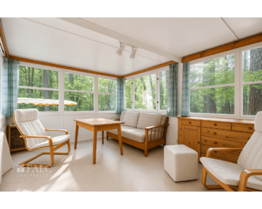 Das charmante Ferienhaus in Holzbauweise bietet ca. 46 m², 2 separate Zugänge zum Haus, 3 gemütliche Zimmer mit Blick in den wundervollen Wald, Kaminheizung, eine überdachte Terrasse und einen trockenen teilunterkellerten Bereich mit Brunnenwasser. Das Ferienhaus ist renovierungsbedürftig, bietet jedoch viel Potenzial für Ihre persönliche Gestaltung.