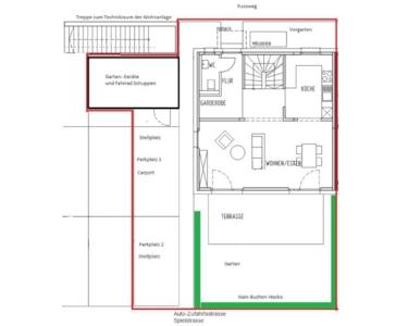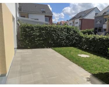 Garten ist 50qm gross und hat Terrasse sowie von 3 Seiten eine Hain-Buchen-Hecke.