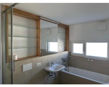 1.5 Bäder (1 Bad im 1.OG - volles Badezimmer mit Einbauspiegelschrank, Glas Wand Dusche, volle Badewanne, WC und Waschbecken)