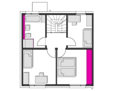 Die ganze Haus besitzt ein Lüftungssystem, indem alle Räume angeschlossen sind.