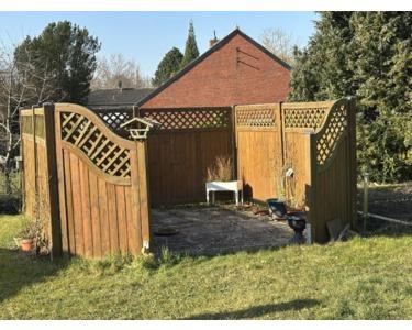 Beide Wohnungen sind über separate Eingänge zugänglich. Der große Garten verfügt über ein Gartenhaus und eine Grillecke, die derzeit von beiden Einheiten genutzt werden.