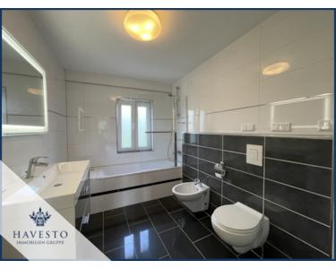 Das helle Tageslichtbad wurde vollständig erneuert und verfügt über eine Badewanne, Waschbecken und WC – modern, gepflegt und funktional gestaltet.