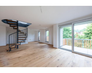 Alle Wohnungen im Dachgeschoss sind Maisonettewohnungen, deren beide Etagen über eine innenliegende Wendeltreppe erschlossen wird.