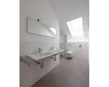 Fliesenspiegel in Sanitärräumen 1,2 m hoch, im Duschbereich 2,0 m.