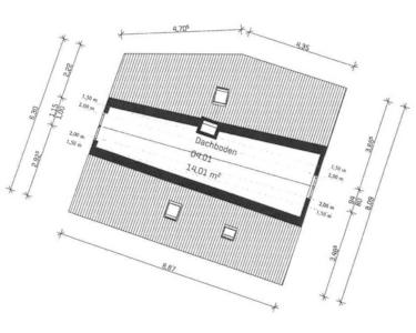 Dachform: Satteldach, Dachboden über Ausziehleiter aus dem DG erreichbar