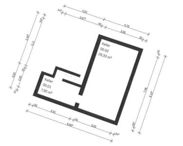 Keller: Ca. 46 m² großer Teilkeller mit einer Deckenhöhe von 2,1 m und einem Außenzugang vorhanden.