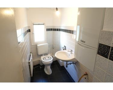 Die Hauptwohnung verfügt über einen separaten seitlichen Zugang. Von der Diele mit praktischen Anschlüssen für Waschmaschine und Trockner führt eine Treppe sowohl in die Wohnräume im Ober-/ Dachgeschos als auch in den Keller.