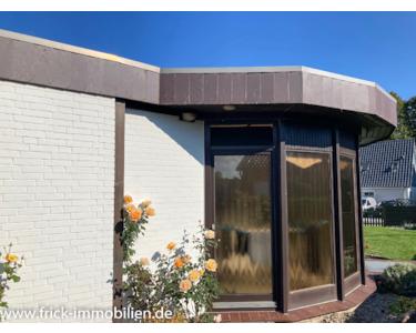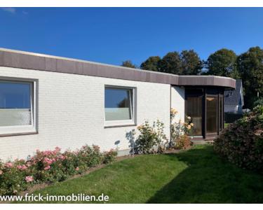 Das hier von uns im Rahmen eines qualifizierten Makler-Alleinauftrages angebotene Grundstück ist mit einem Bungalow nebst kleinem Einlieger-Appartement und einer Garage bebaut. Massive, konventionelle Bauweise ohne Keller. Die beiden Wohneinheiten und die Garage haben separate Eingänge. 1966 wurde der Hauptbungalow erstellt, 1973 erfolgte eine Wohnzimmererweiterung und 1983 ein großer Anbau (Bad und Wellness). Die geräumige, ebenfalls massive Garage wurde 1968 erstellt. Auch das Einlieger-Apprtement hat eine eigene Terrasse. Das Haus ist überdurchschnittlich gut ausgestattet und wurde laufend modernisiert. Es ermöglicht bequemes, ebenerdiges Wohnen und verfügt mit der zweiten Einheit sogar über ein abgeschlossens Gäste-Quartier.