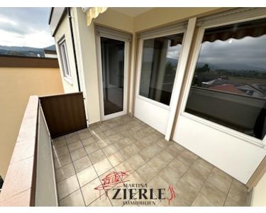 - Der Wohn-Essbereich ist lichtdurchflutet mit Zugang zum Balkon.