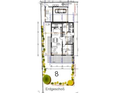Das geplante Einfamilienhaus bietet durchdachte Architektur, die modernes Wohnen und Komfort vereint. Im Erdgeschoss erwartet Sie ein großzügiger Eingangsbereich, der mit einer eleganten Treppe zum Obergeschoss führt. Vom Flur aus haben Sie Zugang zu einem Gäste-Badezimmer mit Dusche, einem Technikraum sowie einem vielseitig nutzbaren Zimmer, das perfekt als Büro oder Gästezimmer geeignet ist. Dieses Zimmer hat zudem direkten Zugang zur Terrasse und dem angrenzenden Garten. Der offene Wohnbereich umfasst eine große, gut durchdachte Küche mit praktischer Speisekammer, einen einladenden Essbereich und ein gemütliches Wohnzimmer, das ebenfalls Zugang zur Terrasse und zum Garten bietet – ideal für gesellige Stunden im Freien.