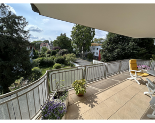 Der mit Parkettboden ausgelegte Wohn- und Essbereich ist großzügig und lichtdurchflutet und gewährt Zutritt zum 20 m² großen Balkon. An den Essbereich schließt sich eine geräumige hochwertige Einbauküche an. Das aus ursprünglich 2 Zimmern zusammengelegte Arbeitszimmer hat direkten Zugang zum Balkon. Neben einem großzügigen Tageslichtbad mit Badewanne, Dusche, Bidet und Doppelwaschbecken, stehen ein großes Schlafzimmer mit viel Platz für ein Doppelbett und Kleiderschränke sowie ein Gäste-WC und ein Abstellraum zur Verfügung.