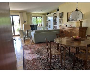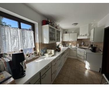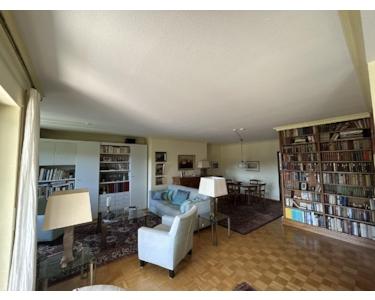 Eine helle 120m² große Wohnung in traumhaft ruhiger Lage. Sie befindet sich in der 2. Etage eines gepflegten 4-Parteien-Hauses mit Garten und unverbaubarem Blick, das 1984 fertiggestellt wurde. Es verfügt über einen Fahrstuhl und eine Tiefgarage mit direktem Zugang zum Haus. Den Bewohnern des Hauses steht ein allgemeiner Kellerraum, auch für Fahrräder, sowie ein Waschkeller mit Platz für die eigene Waschmaschine und einen Wäscheständer zum Trocknen zur Verfügung.