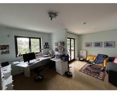 - Parkettboden im Wohn- und Essbereich, Flur, Schlafzimmer und Abstellraum, Korkboden im Arbeitszimmer