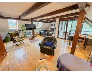 Im Obergeschoss: ein Schlafzimmer, das großzügige Masterbad (2017) und ein großes Wohnzimmer mit Loggia/Wintergarten – hier sorgt ein Kamin für Atmosphäre (Wohnzimmer-Kamin 2017). Eine kleine Treppe führt vom OG-Flur in den Spitzboden – perfekt als Stauraum.