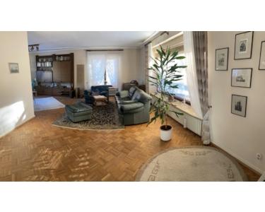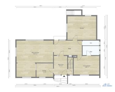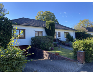 Dieses gemütliche eingeschossige Einzelhaus (Walmdach-Winkelbungalow) mit einer Wohnfläche von 127 m² wurde 1959 auf einem Grundstück von 928m² in massiver Bauweise mit Holzbalkendecke errichtet.