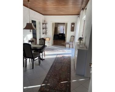 Über den Hauseingang gelangen Sie in einen großen Flur. Sie begeben sich von hier in die Küche mit Einbauküche, zum Kellerabgang und in das Esszimmer mit einer großen Fensterfront mit Blick in den großen gepflegten Garten und Schiebetür zum Betreten der großen teilweise mit Glas überdachter Terrasse.