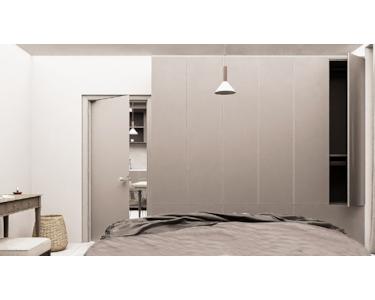 Sie betreten sie über die Diele, die zwei praktische Abstellräume für vielerlei Dinge beinhaltet und führt Sie linker Hand zum Schlafzimmer mit kleinem Ankleideraum.
