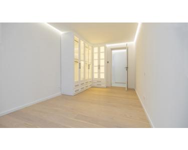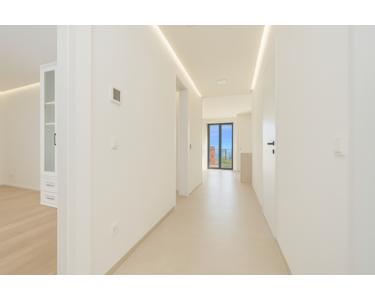Der private Bereich der Wohnung ist klar vom Wohnbereich getrennt. Das Hauptschlafzimmer bietet mit über 16 m² großzügige Rückzugsmöglichkeiten. Ein weiterer Raum mit rund 15 m² eignet sich ideal als Gästezimmer, Kinderzimmer oder stilvolles Homeoffice. Hinzu kommt ein zusätzlicher halber Raum – perfekt als Ankleide, Bibliothek oder Arbeitsplatz nutzbar. Das luxuriös ausgestattete Badezimmer mit hinterleuchteten Onyxplatten, Ambientebeleuchtung und eleganten Armaturen schafft eine exklusive Wohlfühlatmosphäre. Ein separates Gäste-WC sowie ein praktischer Abstellraum erhöhen den Wohnkomfort zusätzlich.