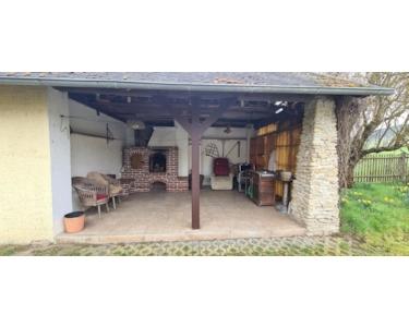 An den Innenhof grenzen eine Terrasse, zwei Garagen und ein kleines Nebengelass mit Grill-Kamin und weiterem Abstellraum.