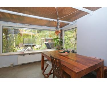 Im Erdgeschoss befinden sich ein großzügiger Wohn-/Essbereich, ein Schlafzimmer, die tolle Retro-Küche mit anliegendem Wintergarten, ein Badezimmer mit Dusche und der Zugang zum Garten.