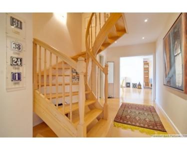From the entrance hall, a wide staircase leads to the upper level. Here you will find the bedrooms, bathroom with bath and shower and the dressing room.