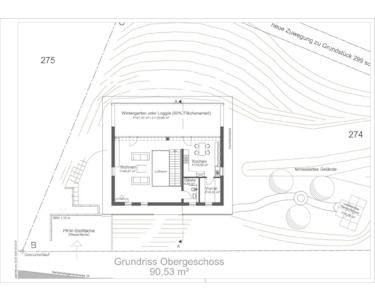 Das obere Grundstück ist derzeit mit einem Rohbau in Containerbauweise bebaut, der jedoch abbruchreif ist.