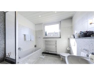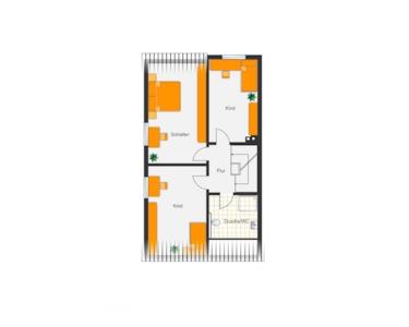 Das 1. Obergeschoss verteilt sich auf zwei Kinder/Arbeitszimmer, ein Elternschlafzimmer und das schöne geräumige Bad mit Fenster, Dusche und Badewanne.