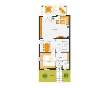 Im Erdgeschoss erwartet Sie neben dem hellen Eingangsbereich mit Garderobe die großzügige Küche mit Durchgang zum Essbereich und zum hellen Wohnzimmer und ein Gäste-WC.