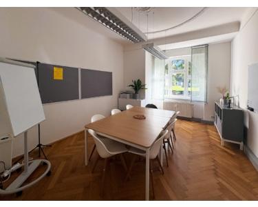 Für Besprechungen und Team-Meetings steht ein separater Meetingraum bereit.
