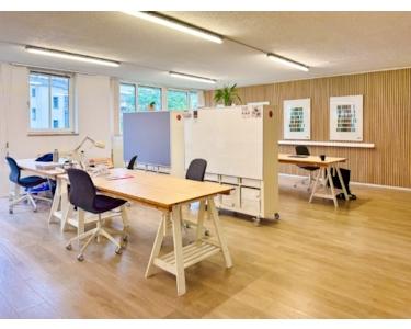 Insgesamt stehen 21 voll ausgestattete Büroräume von 18 m² bis 57 m² zur Verfügung, die mit elektrisch höhenverstellbaren Schreibtischen, ergonomischen Office-Stühlen und Whiteboards optimal auf produktives Arbeiten ausgelegt sind.