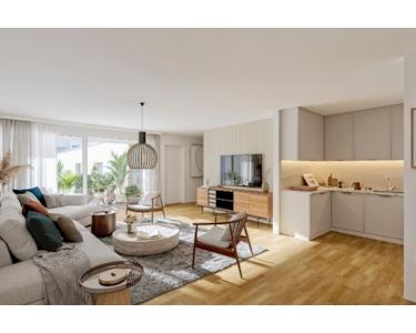 Diese 3-Zimmer-Wohnung im 1. Obergeschoss ist Teil des neuen hyggl-Quartiers – dem Wohnbauprojekt in Kassel, das ein lebendiges Zuhause für alle Generationen schafft. Auf ca. 87,04 m² überzeugt sie mit einer klaren Aufteilung und barrierefreien Nutzungsmöglichkeiten. Mittelpunkt ist der großzügige Wohn- und Essbereich mit offener Küche, der sich zur Loggia öffnet – zur Hälfte in die Wohnfläche eingerechnet. Ein separates Schlafzimmer, ein Büro, ein modernes Bad mit ebenerdiger Dusche sowie ein Abstellraum mit eigenem Waschmaschinenanschluss ergänzen den Grundriss.