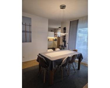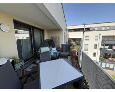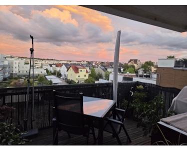 Das Herzstück der Wohnung bildet der gemütliche Wohn- und Essbereich, der dank großer Fensterflächen von Licht durchflutet wird und direkten Zugang zum großen Balkon bietet. Von hier genießen Sie einen unverbaubaren Ausblick – perfekt, um den Tag bei einem gemütlichen Grillabend ausklingen zu lassen oder erholsame Stunden im Freien zu verbringen.