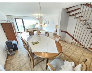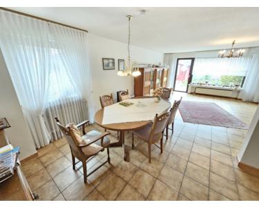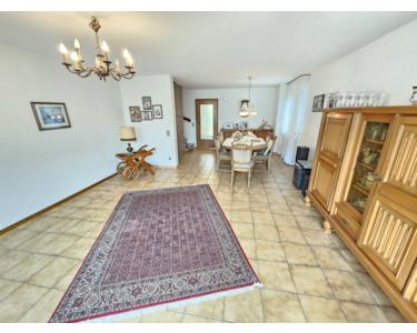 Alle Fenster sind doppelt verglast und mit Rollläden ausgestattet, teilweise elektrisch betrieben. Der großzügige Wohn- und Essbereich bietet viel Licht, eine angenehme Atmosphäre und den Blick in den ruhigen Garten.
